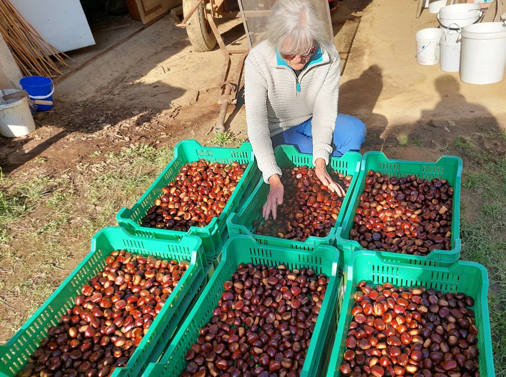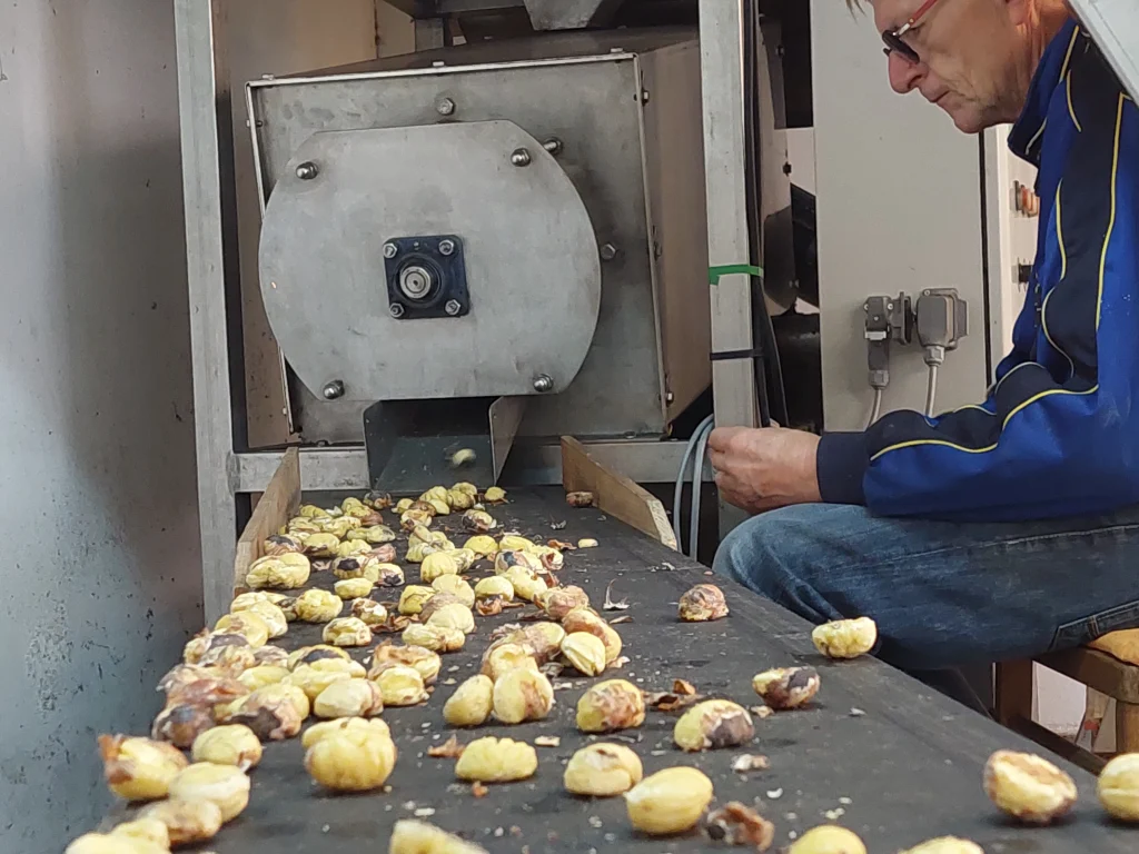 Wir kaufen jährlich 3 bis 5 t heimische Kastanien. Zwischen 500 und 800 kg verkaufen wir als Frischware. 2 bis 3,5 t verarbeiten wir – etwa die Hälfte zu Kastanienpüree, und geschälten Kastanien, die andere Hälfte zu Mehl.