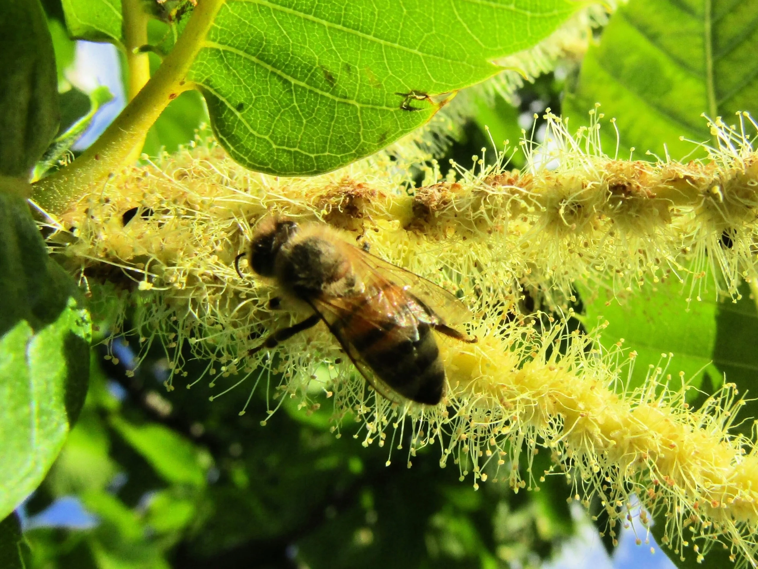 Während der Blütezeit sind Kastanien eine wichtige Nahrungsquelle für Wild- und Nutzbienen und andere Insekten