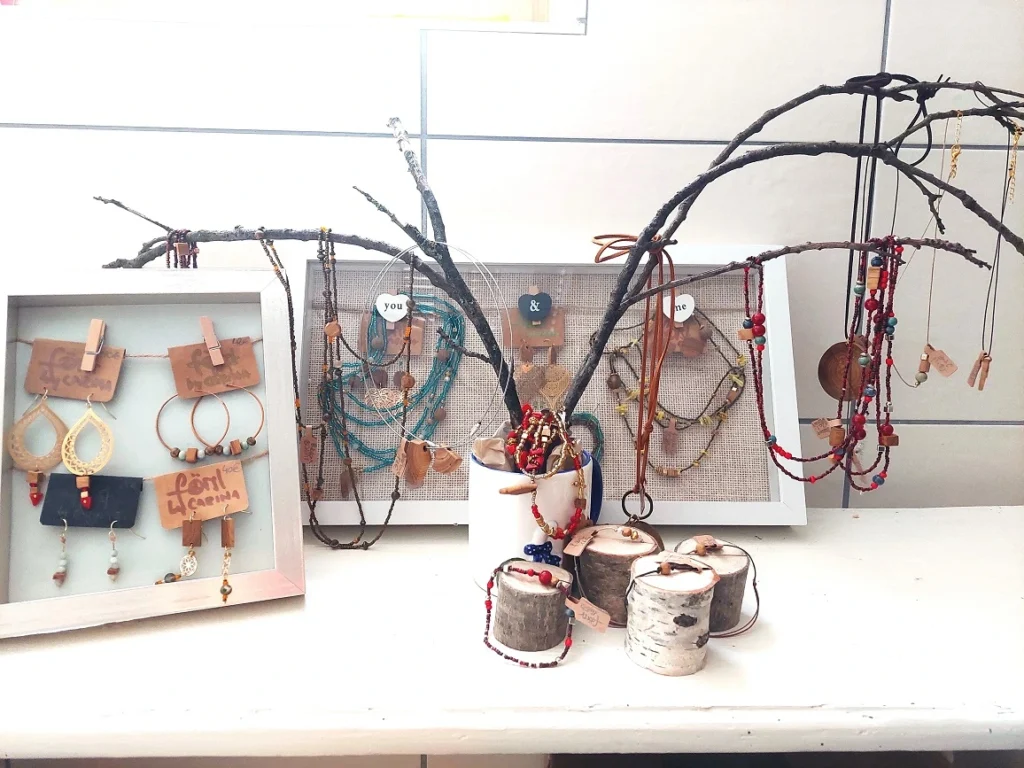 Carina Först, eine Künstlerin mit Bezug zu unserem Verein, beschäftigt sich mit Schmuck unter Verwendung diverser Holzarten. Kastanienholz unterstützt ihre Arbeiten besonders gut.