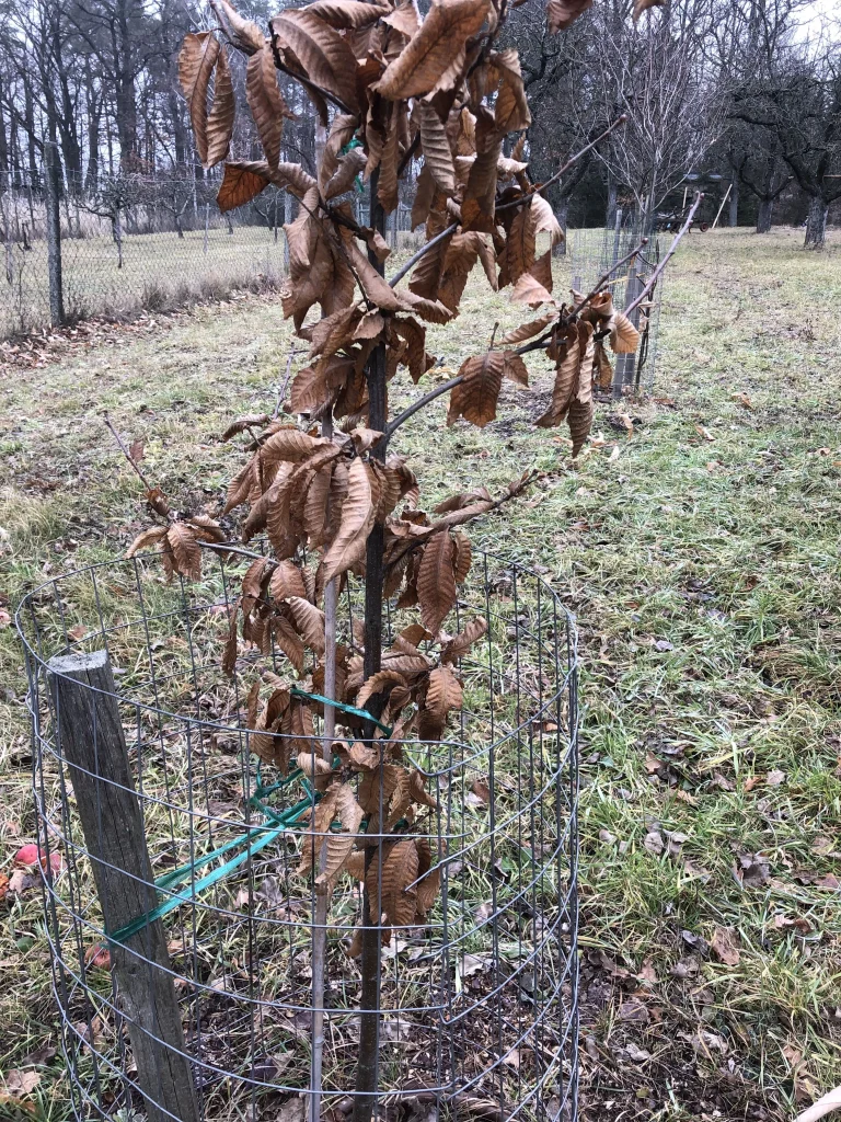 - Die Bäume ebenso gegen Verbiss schützen – vor allem Rehe lieben die Rinde von jungen Kastanienbäumen