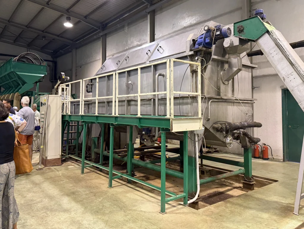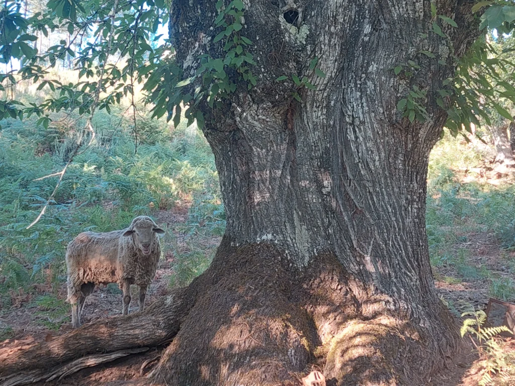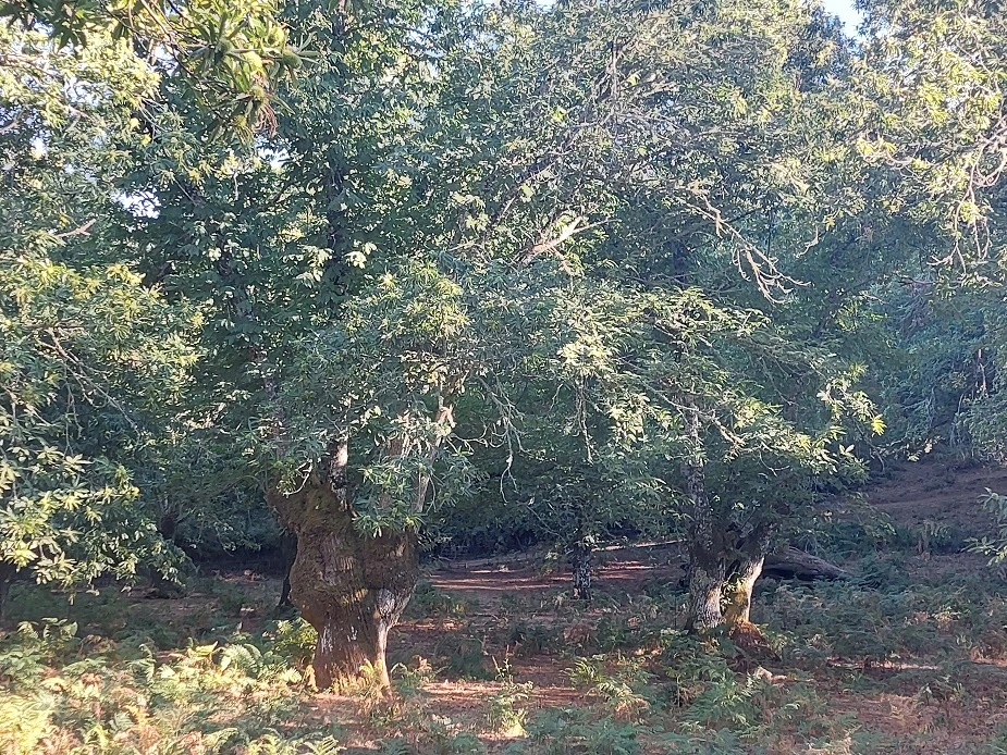 Besuch eines Kastanienhains mit zahlreichen lokalen Sorten wie Plantalajar, Helechal, Comisaria und Vazquez. Der Hain wurde durch ein starkes Zurückschneiden der alten Bäume umfassend saniert. Zwischen den Kastanien grasen heute Schafe, Ziegen und Esel.