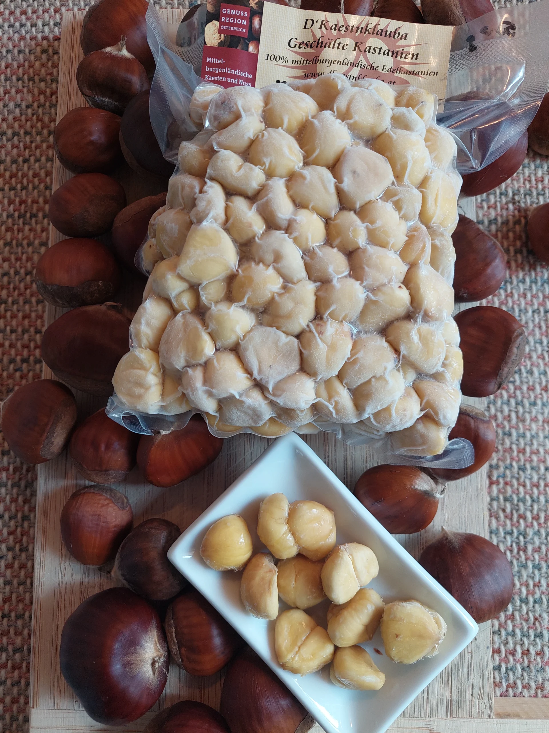 Kastanien, roh, geschält, tiefgefroren, zum Braten, Grillen, Kochen, … für Süßes und Pikantes
